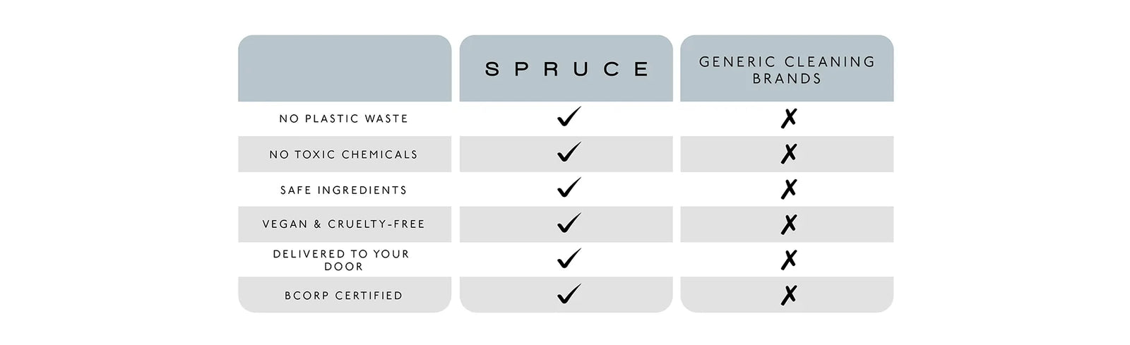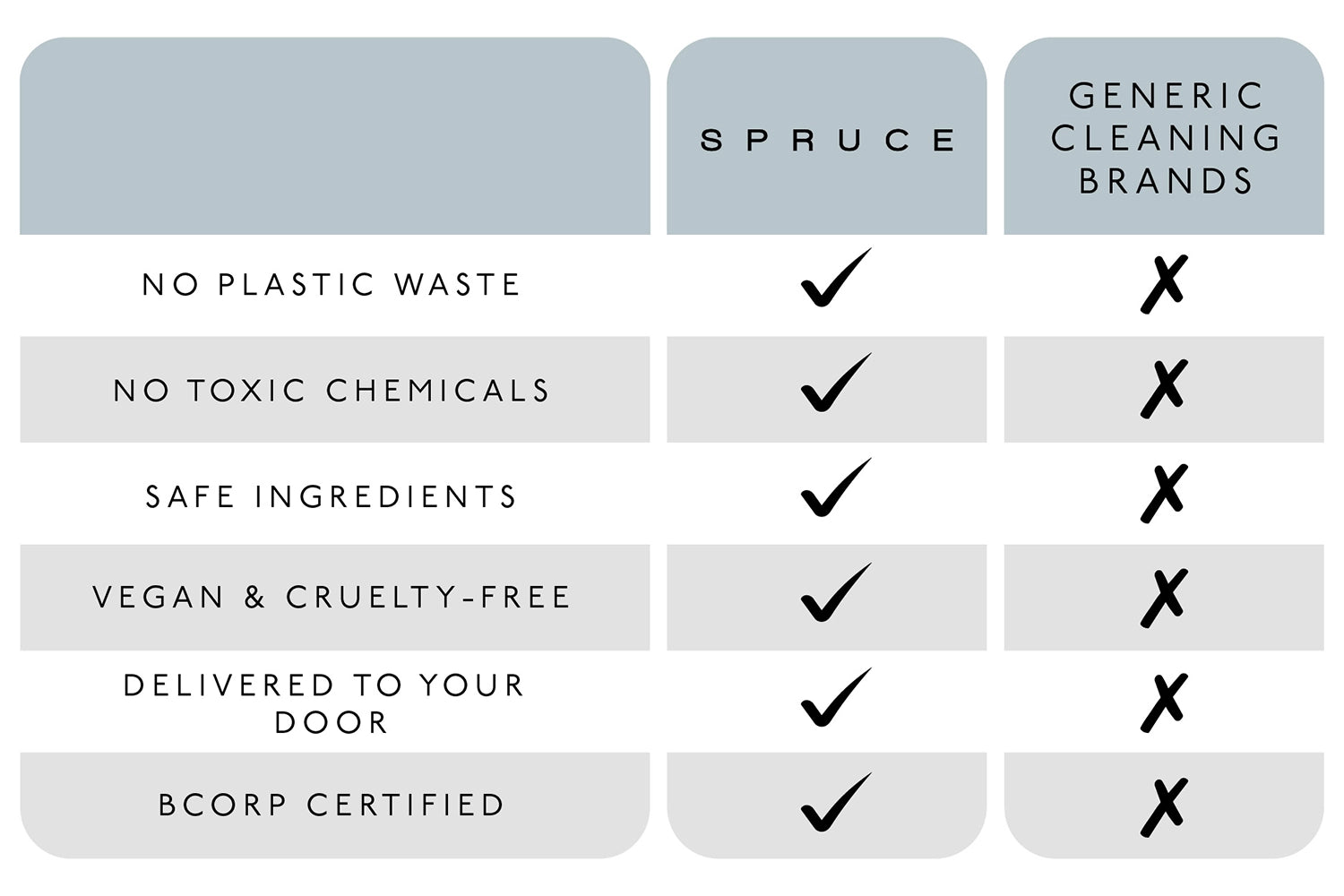 How do your revolutionary cleaners work? Spruce is super easy to mix and use. No scientific experiments needed. Simply empty refill contents into your refillable Eternity bottle, fill with tap water slowly and get cleaning within minutes. No need to shake. Use only one refill pack per bottle.