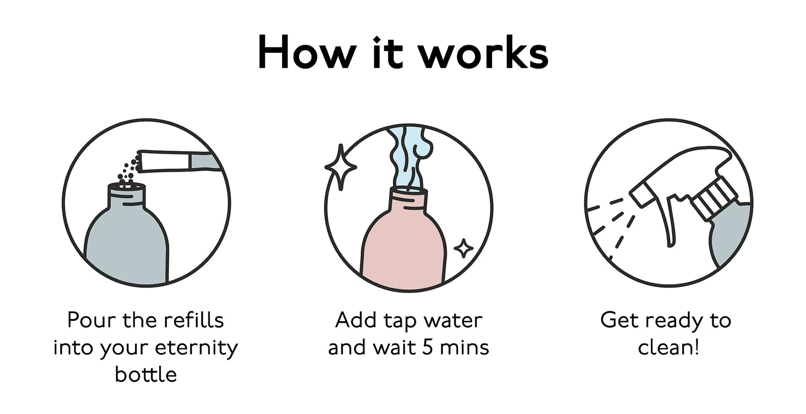 Do you sort and rinse your plastic waste before chucking it in the recycling bin? Guess what? Over ninety per cent of it never gets recycled. With our Eternity bottles, you'll never need to throw away another single-use cleaning bottle again. Win!